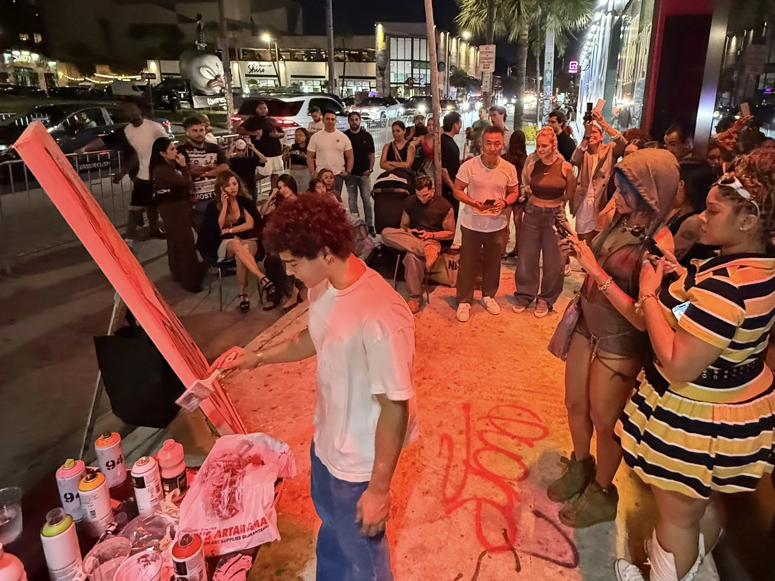 Romeo has experience performing live painting across a range of events and settings, collaborating with brands and restaurants in Miami, Colombia, and New York, through commissioned works. His practice adapts to each environment, creating engaging, in the moment works that connect with audiences while enhancing the atmosphere of each occasion.